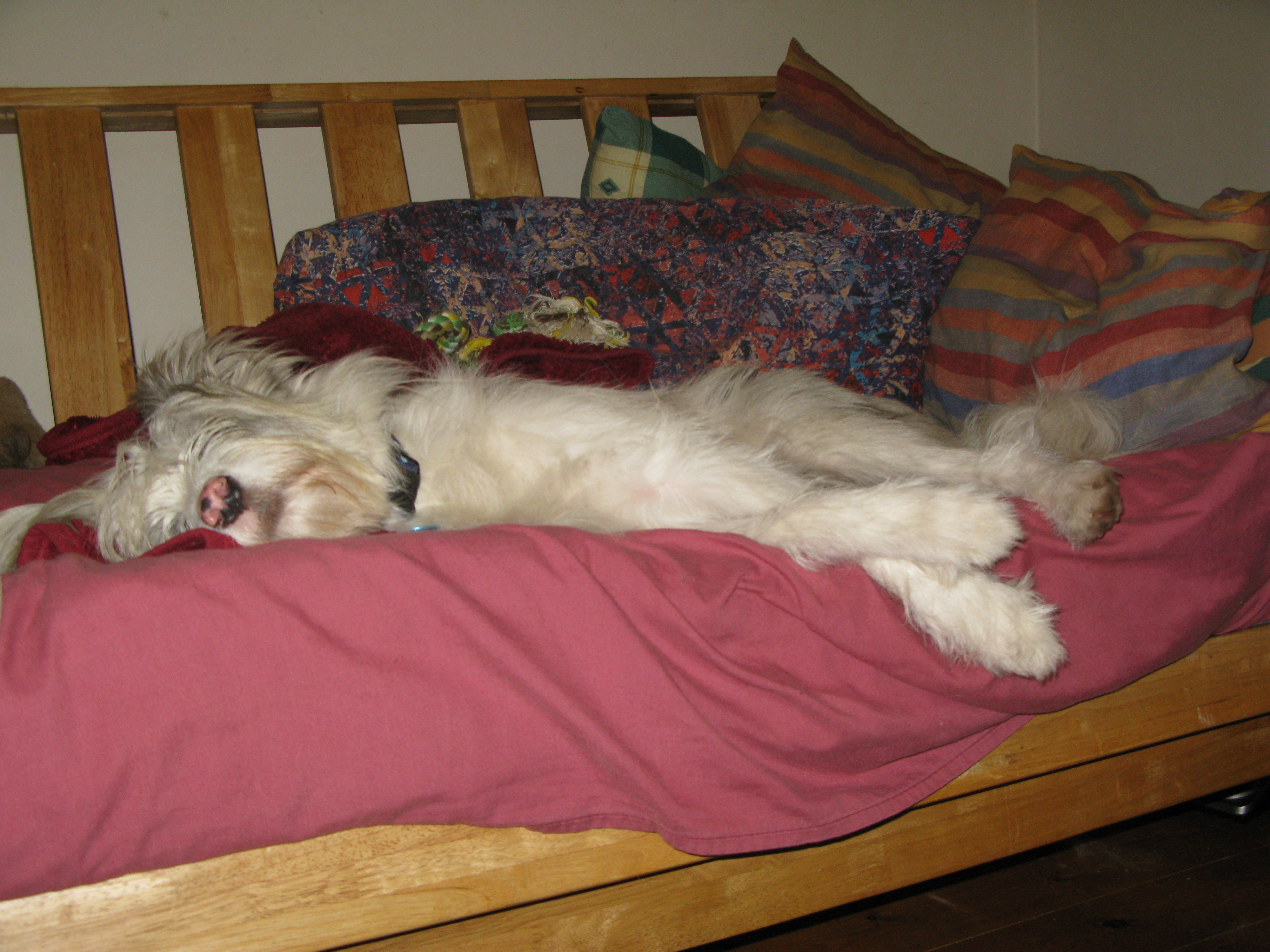 Then she rests angelically on the futon conserving her energy, no doubt, for a good loud bark or two when she thinks her bedtime treat is due.