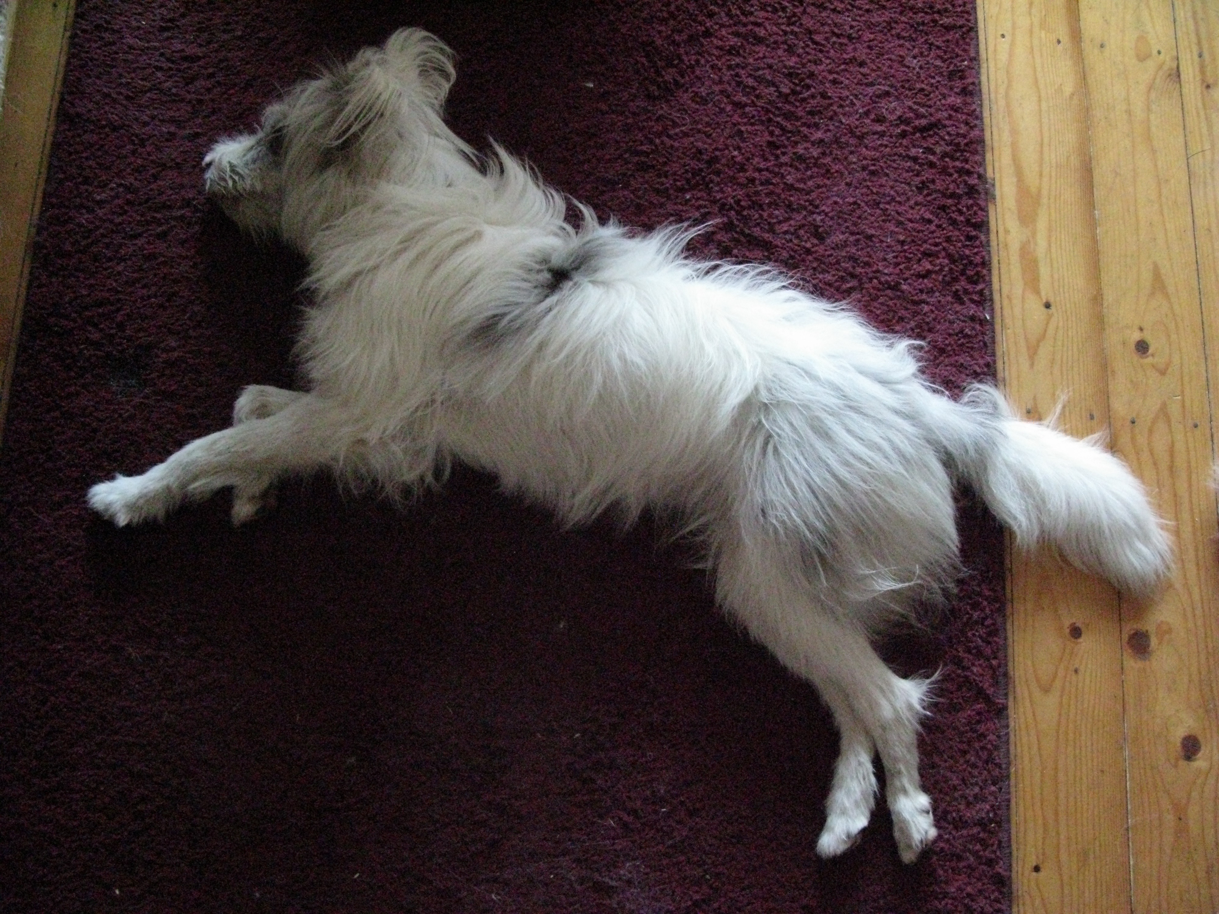 All this I did religiously. No idea had I then that my new little podengo mix would have had no problem with uprooting the brambles, would soon be pruning low, overhanging branches with relish and would regularly remove the padding I wrapped round the whirligig, the edges and arms of the garden seat in order to protect her. Neither could I have guessed that she would be an expert recycler. Nor that she would seek out sharp objects to play with no matter how carefully they had been hidden away. That she would spend hours transforming stable objects into precarious heaps. That she would create mounds of rubbish from what had been useful or decorative items: bags, clothes, bed linen, fences, posts, sheets of plastic, her new tunnel, shrubs, flowers, to name but a few.