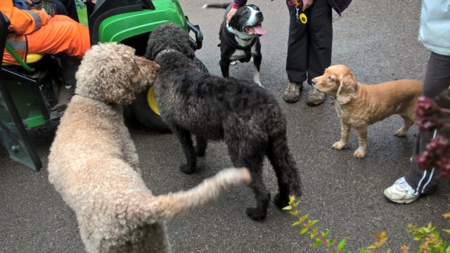 It’s all too much for poor Isis. She sniffs hopefully. She’d like a treat but there are too many people and dogs around.