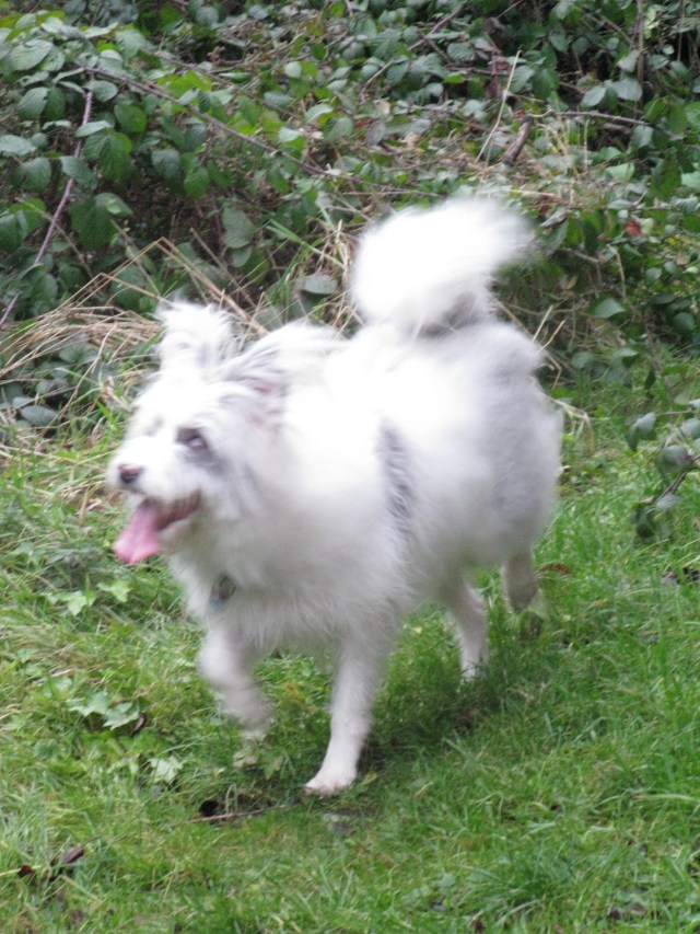 By contrast, every time I gather up my phone, a slice of foam in a plastic bag to sit on and a handful of poo bags, she twirls by the back door, wagging ecstatically, well before I drape her lead round my neck and open the door. How she knows we’re going into the lane, I can’t fathom. I suppose she must smell the items I’m collecting, or follow a pattern of movements I make. Strange.