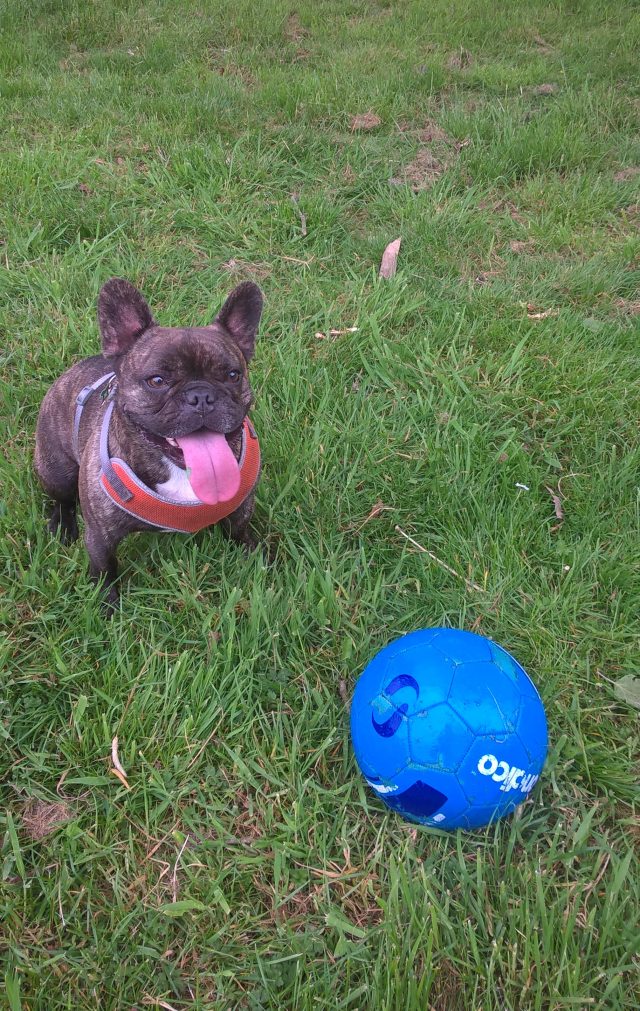 When I say that I’ve never seen a French bulldog run so fast, Frank’s owner explains that many breeders breed for ‘pretty’ colours which, of course leads to interbreeding. Apparently, only three ‘original’ colours are accepted by the Kennel Club: brindle, white and piebald.