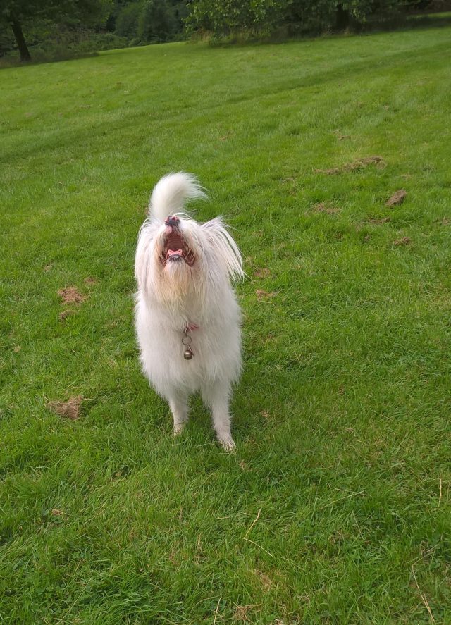 Every day this week, we both enjoy at least two hours in the pouring rain in Kings Heath Park. This park, like all the other local parks, is full of mud, but the steep bank by the old bowling green drains very well. If she plays there, her pink pads and fluffy white undercarriage remain clean.