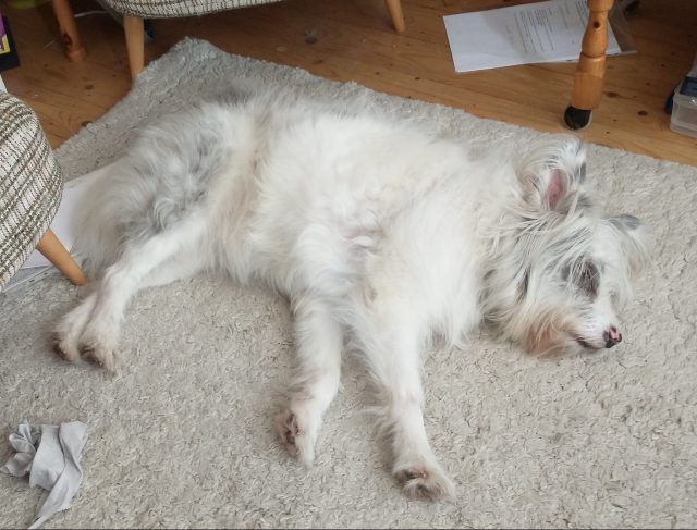 The ‘little angel’, I am told, is absolutely fine. She’s eating and has already begun dismantling the two outsized cardboard boxes which I took in for her.